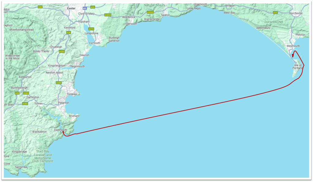 Crossing Lyme Bay is one of those things that make cruising in a small(ish) yacht special, at least if you keep your boat somewhere to the East of it. First there is the small matter of negotiating the sometimes scary tidal race off Portland Bill, always worth getting worried about even if you’ve done it loads of times, but you get round without being shipwrecked and then the adrenaline subsides and you are into a long plod across a featureless expanse of water, often out of sight of land for the first and last time on your cruise.