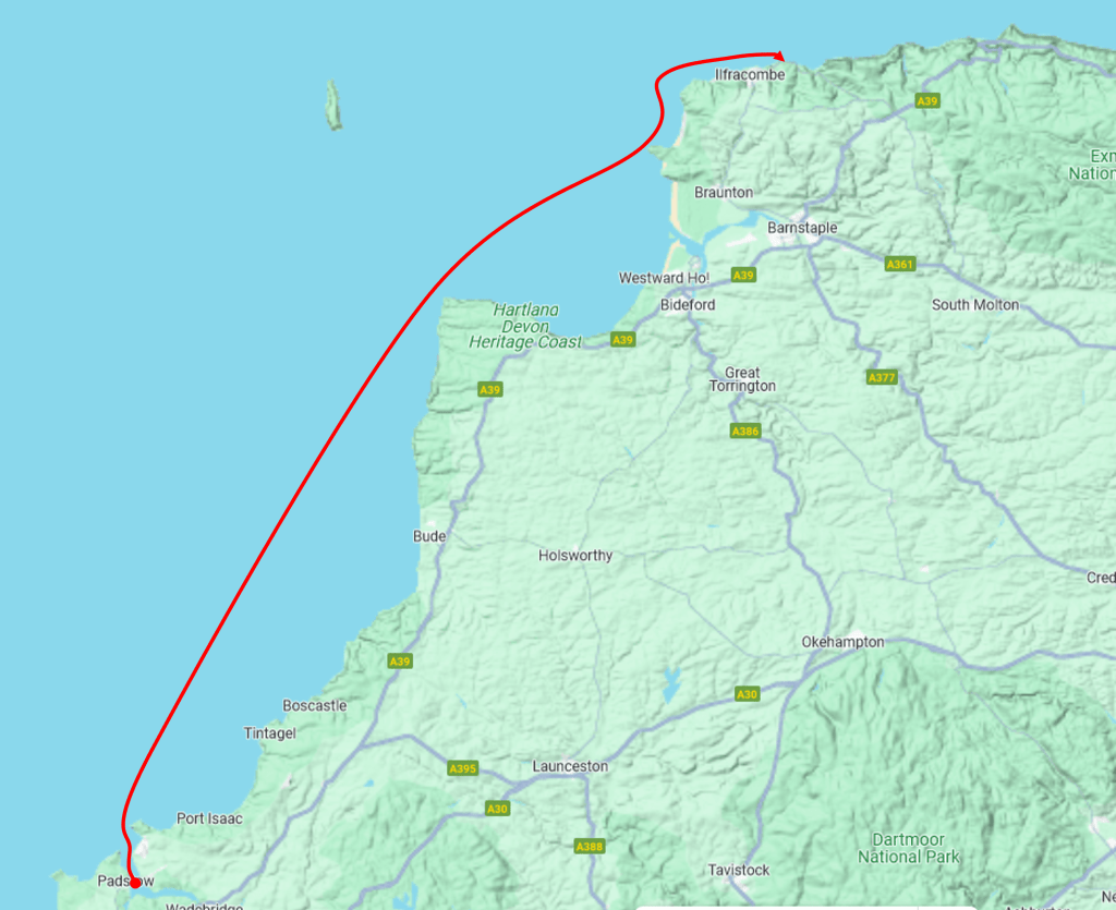 one minute 7 knots, the next 25. It was like walking into a brick wall. The temperature dropped even more, the waves became mountainous instantly and out of nowhere three huge cargo ships appeared, each apparently about to run me down. Welcome to the Bristol Channel.
