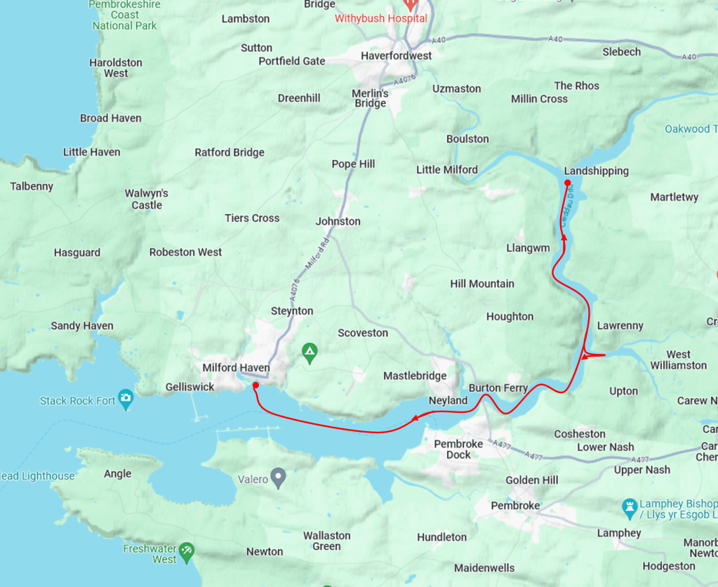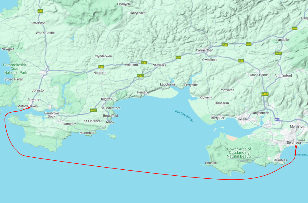 So Penman saves the day, three cheers.. We would have arrived to find a rat-ridden muddy swamp, and nowhere else to go safely. Instead, we ended up with a rather longer sail to Milford Haven and peered at Tenby and Laugharne and Ferryside and Burry Port in the murky distance. We tried to get closer to the shore to look at the beautiful scenery but the man on the military range called us up and made it clear that we could become a target for some Ukrainians in their new Challengers so we kept the land out of sight.
