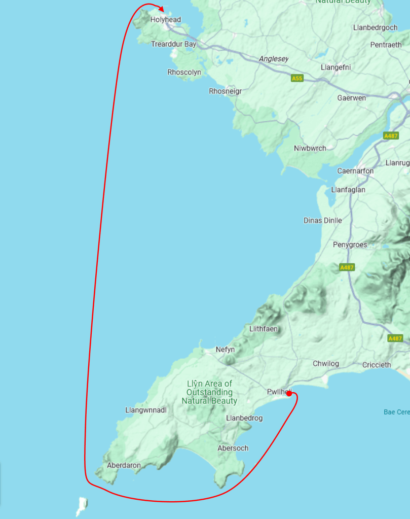 My plan then was to spend a quiet night in Pwllheli before heading off to explore Abersoch and Aberdaron. Abersoch is the opposite of Falmouth in that most classes of boat I’ve raced have held championships there but I have never been. It is, of course, Cheshire-on-Sea and people come back with tales of weeks of fun, variously involving girls from Cheshire or fine dining, depending on how far back you want to go. So I was looking forward to at least a decent baguette and an ice cream and a roam around before spending the night in Aberdaron at the tip of the Lleyn Peninsula before heading up to Holyhead the next day.