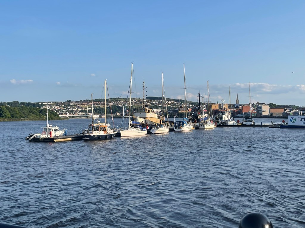 And so I ended up tied onto a ramshackle pontoon (a marina in name only) but bang in the middle of Derry (you can call it Londonderry if you want but it takes longer to type and seems less acceptable) in searing heat while people in shorts wandered around talking about the heat. It was sunbathing hot until past 9pm, as I discovered when I looked down and saw the colour I had gone.