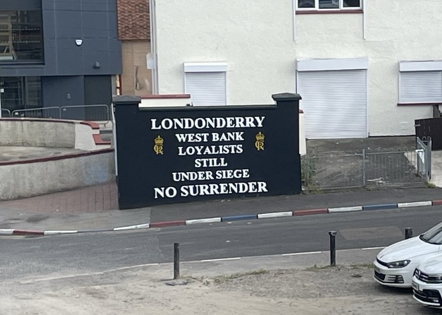 Just then Andrew phoned; his bus had arrived early and I was jolted back to 2023. We walked the walls and I explained about the museum. We looked down at the Bogside Murals and the Union Jacks on the other side of the wall, and decided not to go back down.