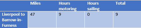 I’m not a huge fan of Blackpool, having only been the once but it involved a very early start, unpleasant fish and chips and feeling horribly sick because of the rides the boys had dragged me onto. All of which memories hung around all day as we motored painfully slowly past. Not even that slowly, as you can see the wretched tower from the end of the Queen’s Channel off Liverpool to Barrow in Cumbria.