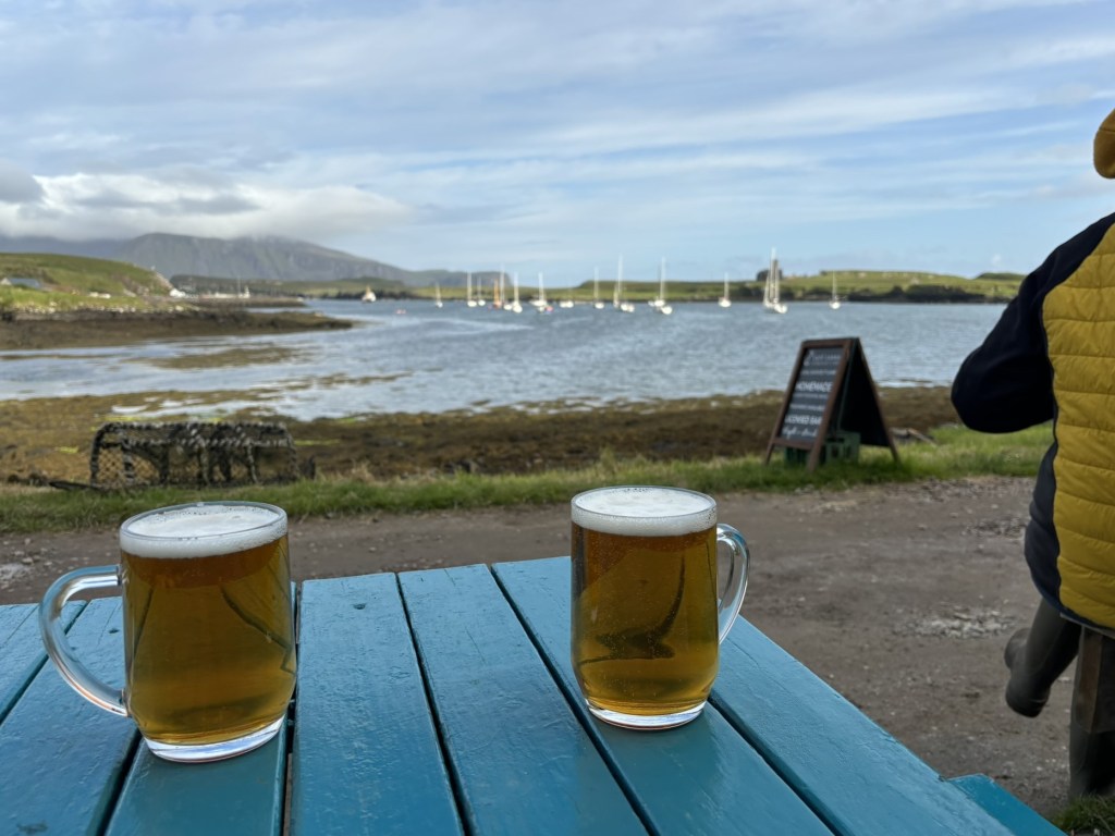 It sounded good, and it still does, but it didn’t even survive the night. We woke up to a southerly but it was about five knots, so about as much use as the Clyde Cruising Club’s guide to East Coast rivers. Engine on yet again, motoring up the Sound of Mull. Worse still, and to the surprise of no readers of this blog, the forecast had completely changed its mind, and it was now going to blow very hard from the south until it was time for Peter to go home, when it would blow quite hard from the north again. The harbours on Muck and Eigg are completely exposed to the south, so that was plan A out of the window, but we hoped we might scoot round in the lee of Ardnamurchan Point to visit Loch Moidart at least. I had cunningly prepared a Plan B too, which was to visit Canna again, as it was firmly top of that list of best places visited in 2023 that I promised to write and never did, and I liked it so much I wanted to go back for one more Café Canna seafood platter before I die, and it would be more fun with someone. Its harbour is fabulously sheltered from the south, so a quick phone call and it was booked, and a different box was to be ticked.