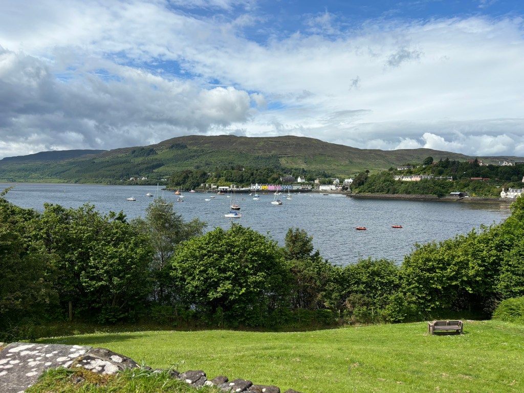 Deciding that downtown Portree had little that I needed, let alone liked, beyond a Co-op, I headed for a walk to the outskirts round the bay by where the boat was. There were nice views, some very smart houses and a cheerful sailing club whose younger members had been out having fun racing round the moorings the night before, but none of these things were enough to make up for the fact that the time it took to walk there and back was exactly the time it took for the heavens to open, so I got soaked heading back to the boat, where I spent the rest of the day and the night watching the rain come down in sheets, wondering if tourists were still clambering off buses in the downpour to record their visit with selfies.