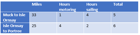 And so, weaving past Kyle of Localsh and under the bridge and round the odd islands that bend the wind so that it’s always on the nose, on up to Portree, which styles itself the capital of Skye, and perhaps it is, but I doubt that’s official. I’d read fairly dismissive reports of how it’s not great for yachts, being surprisingly exposed, rather scruffy and full of tweed shops. I found this hard to believe as it looks a lot like Tobermory which is none of these things, but I was wrong. I picked up what looked like a sheltered visitors’ buoy but the wind changed in the night and kicked up a nasty swell. Next morning I went ashore and found a considerably scruffier version of Tobermory where there were no facilities at all for visiting sailors, but an awful lot of cafés and shops selling tweed and other highland souvenirs. Fresh fish? A butcher selling Skye venison? A shower for someone who had just paid £20 for a visitors’ buoy? Even cheese from Kintyre? Apparently not.