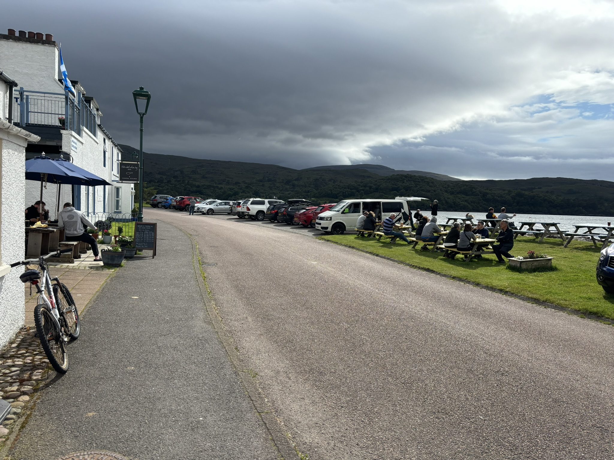 It turns out that the North Coast 500 meets the coast here, so I suppose everyone just stops and drinks in the view, and the tea, and the beer. I withdrew to the boat and hid below. If I looked out of the windows on the other side all I could see was trees and mountains and gusts of wind hurtling away from me down the loch. I wasn’t sure which view was better.
