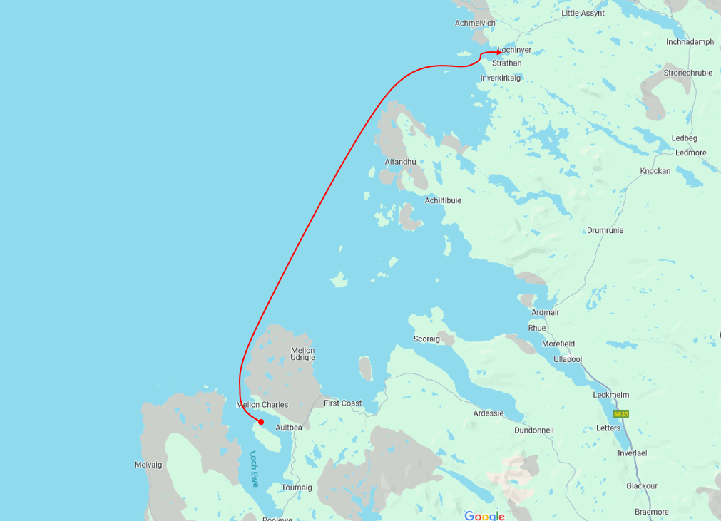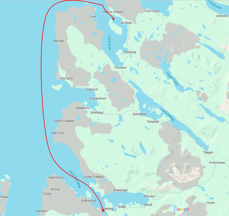 As you can see, it too had fallen for the ‘nothing to see here’ dangerous headland trick of 10 knots of breeze and sunshine. Not to be fooled this time, I took the spinnaker down early and put a reef in before even rounding it and heading up to Loch Ewe. Not enough! As we got to the loch entrance, sure enough, howling gusts of wind, a second reef. At least this time I was ready, but rather than heading up to where I’d had such fun with the Navy many years ago, which was on the main road so guaranteed to be full of campervans, I opted to anchor in the lee of the properly remote Isle of Ewe.