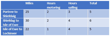 Meteorology is not my strong point, as you’ll have gathered, but even I found this explanation both unscientific yet somehow totally plausible given my experience of the last few days. What really bothered me though was that if this was the best sailing in the world, how would they find it if – for instance – they ventured south of Skye, where the wind tends to blow the same strength and in the same direction for up to two hours at a time? And where most harbours have shops and showers? I decided as a visitor to their waters to smile and nod, but I’ve retained the caution about doubling the forecast until I get back to a country a bit less wild and windy.