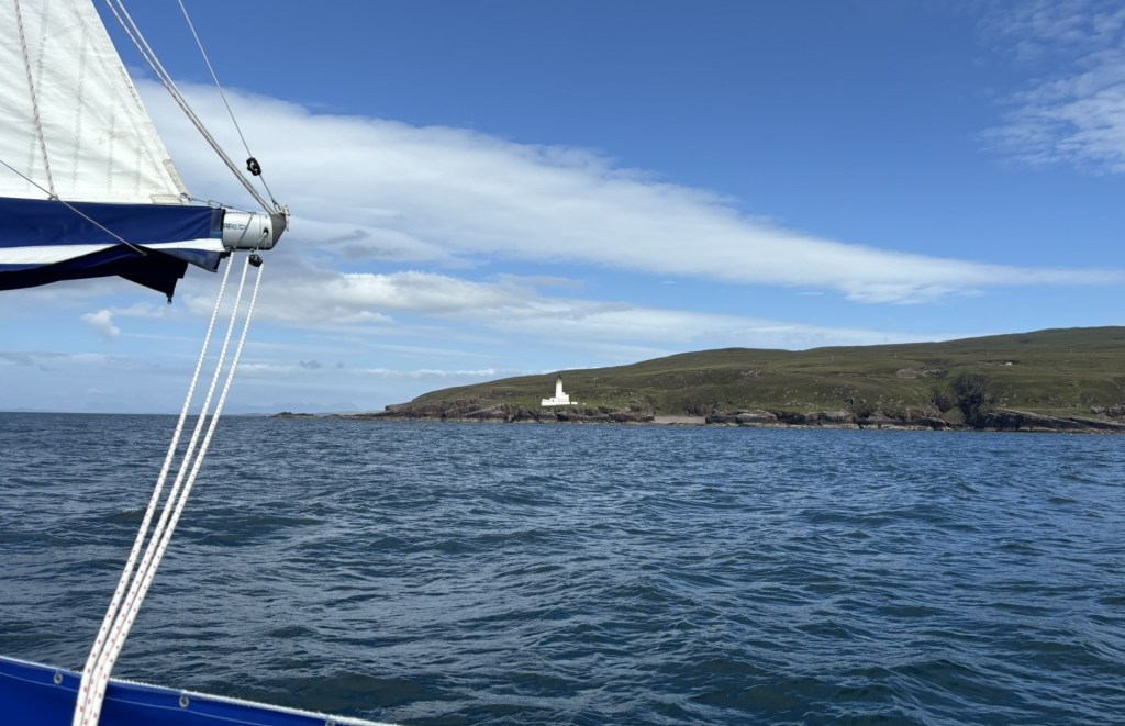 We headed off on our separate ways, and Sunday seemed even nicer than Saturday. I put up the spinnaker again (mainly because I didn’t want anyone from Itchenor Sailing Club thinking I hadn’t) and headed the few miles north to Loch Ewe, past another famously dangerous headland-with-lighthouse Rubha Reidh.