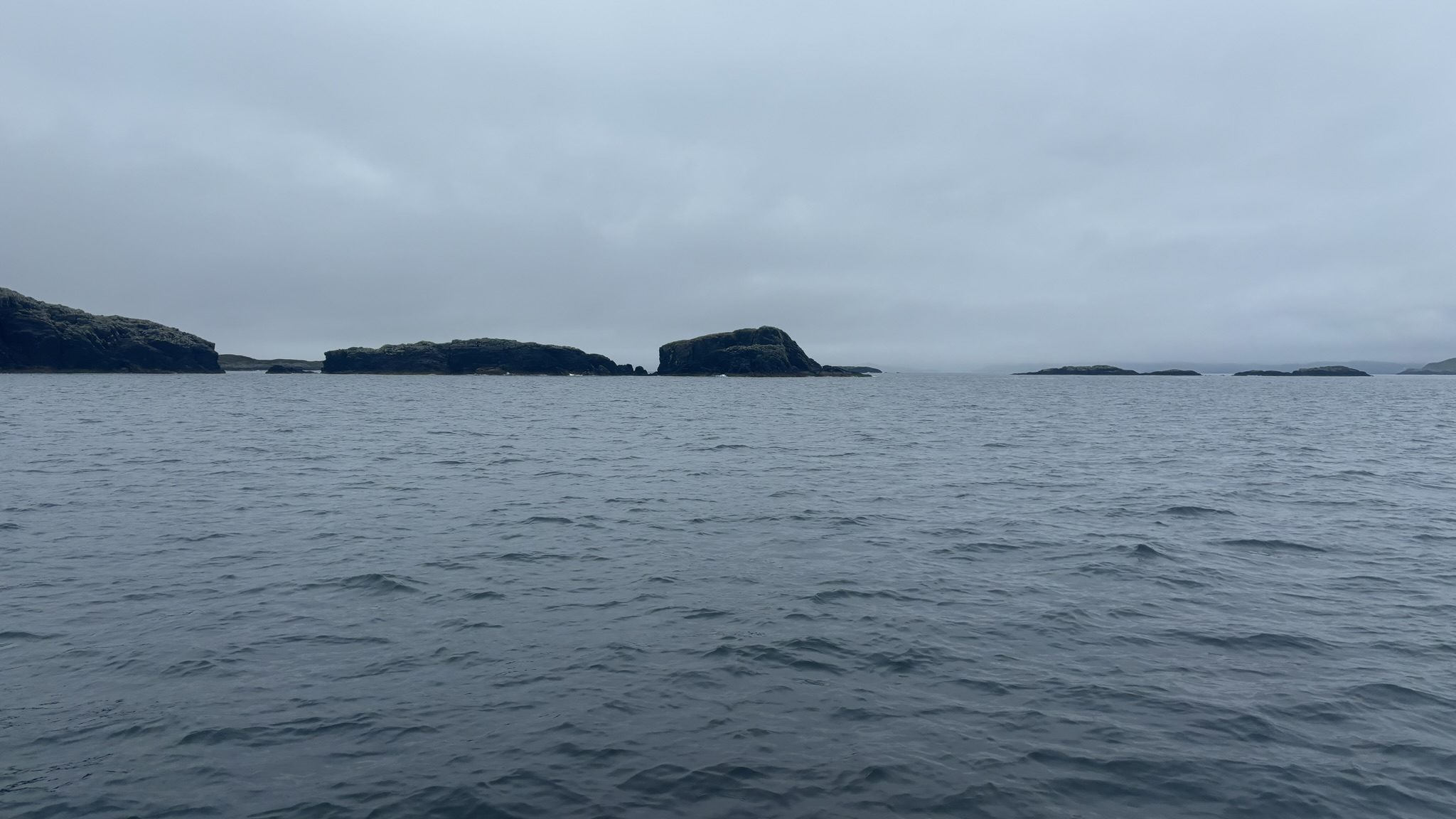 First, I had to pay a visit to the Badcall Islands, mainly because they had such an entertaining name, but also because they are ever so slightly further North than Stornoway, so I would feel I had ticked another box over last year. They lived up to their name: on a proper summer’s day they would have been as delightful as the Summer Isles further south, but in the heavy drizzle it was a bit bleak, so I took a picture or two that look rubbish, wrote 58° 19’ N in the logbook and headed south.