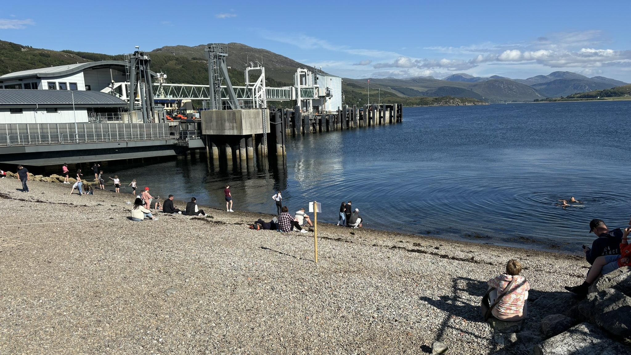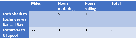 …to Lochinver where I could clearly make out Blue Moon on her pontoon…