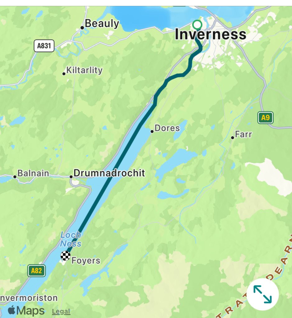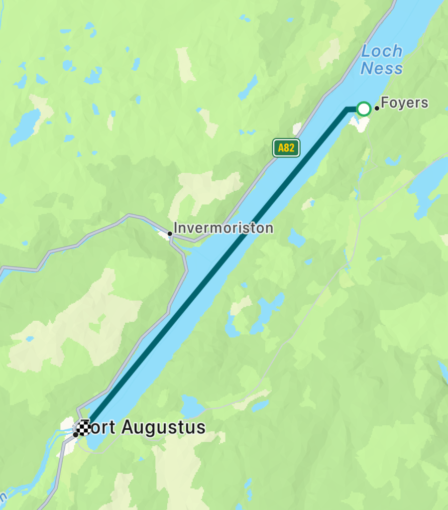 This was a very strange experience: most of Loch Ness is well over 100 metres deep right up to the shoreline, but Foyers Bay is a little promontory on the south side opposite the main road where two rivers have deposited a small bank of shingle you can anchor on, so we did, and enjoyed the chance to get further away from the boat than the towpath for the only time in the whole canal by walking up the almost deserted hillside to a very remote hotel with amazing views over the loch. Sadly not of the boat: although we had anchored metres from the beach under a very effective shelter of pine woods, it was blowing over 20 knots and I was very pleased to get back to the beach to find Blue Moon still there, not making her own way back to Inverness. The only mishap came the following morning when in my eagerness to pull up the anchor I managed to pull us onto the shingle bank, but at least I can now say that not only have I sailed down Loch Ness, I have run aground in it, which might just be unique.