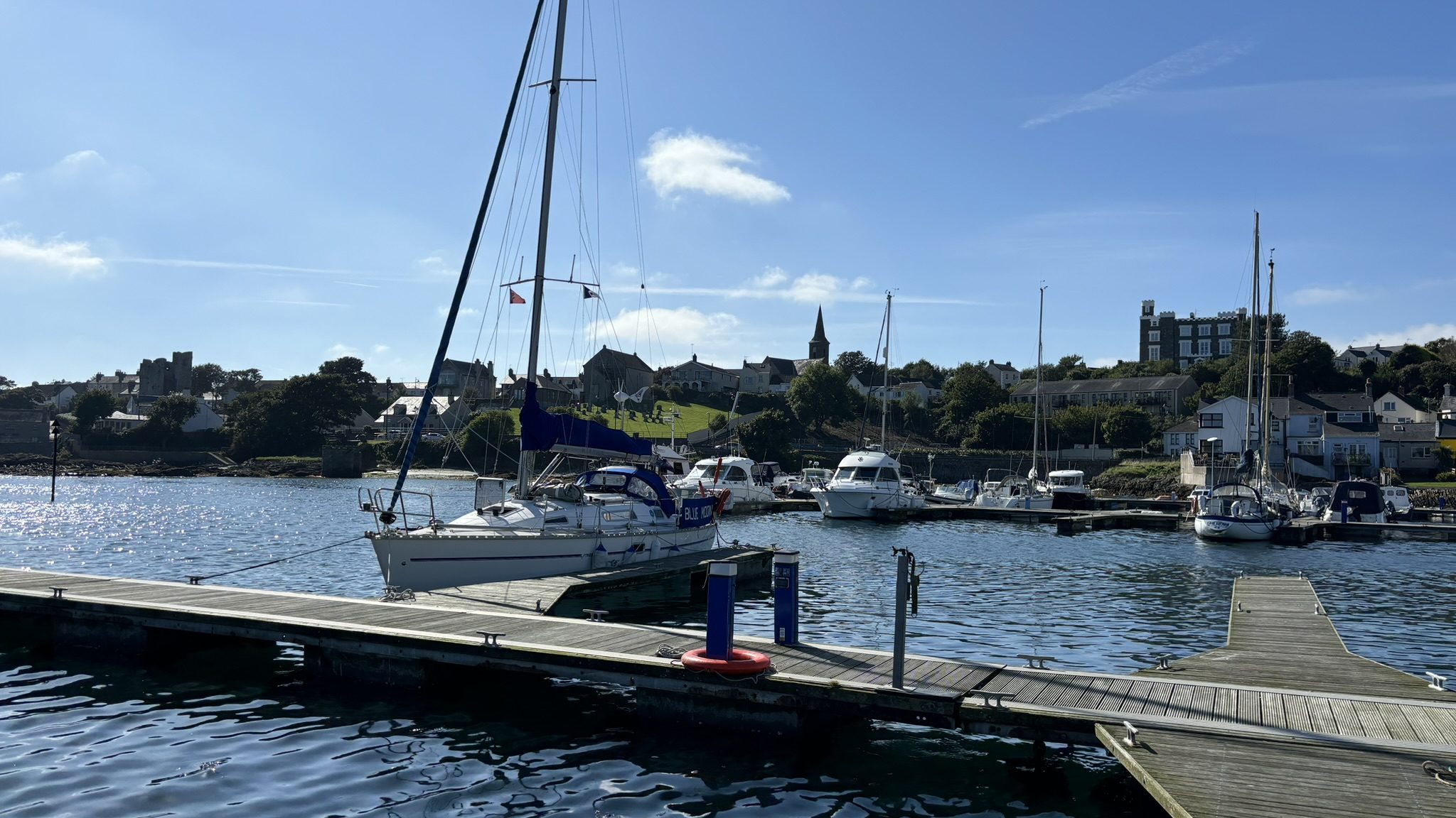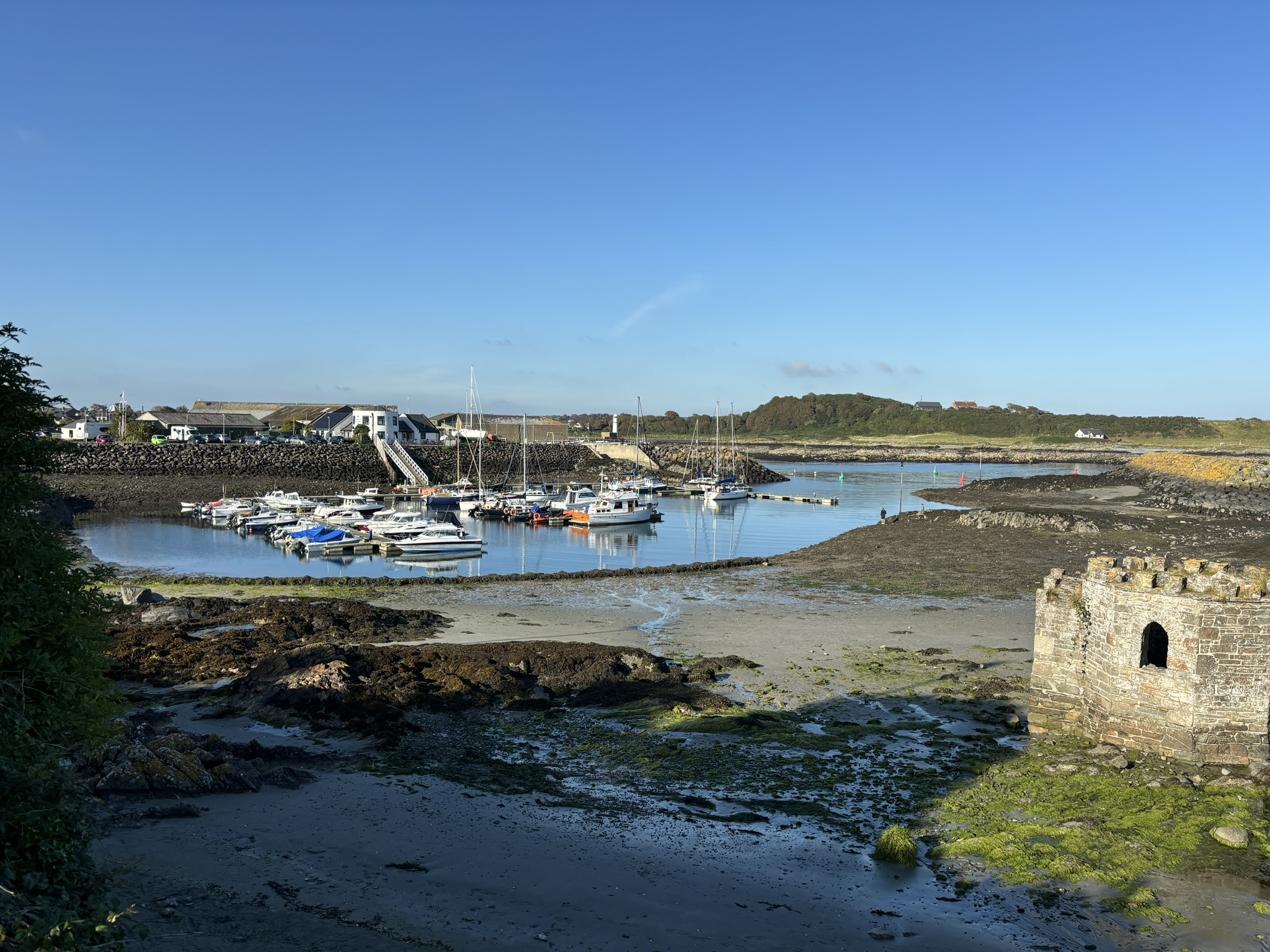 Not at all accounted for one of those days so I spent it in Bangor doing useful things like grocery shopping, then the wind swung round to the South-East and made for a very pleasant sail down the coast to a village called Ardglass just south of Strangford Lough. We had to miss it last year but I’d wanted to go there as it looked pretty and everyone said the tiny marina (apparently set up by a community charity to foster inter-community goodwill during The Troubles) was exceedingly friendly, run as it is by local volunteers. They also mention that it is extremely small and hemmed in by rocks, but worth it because there are no less than four castles to look at.