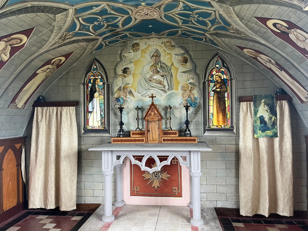 The altarpiece is based on a well-known 19th century Italian painting; Chioccetti’s mum gave him a copy when he went to war and he’d kept it in his wallet.