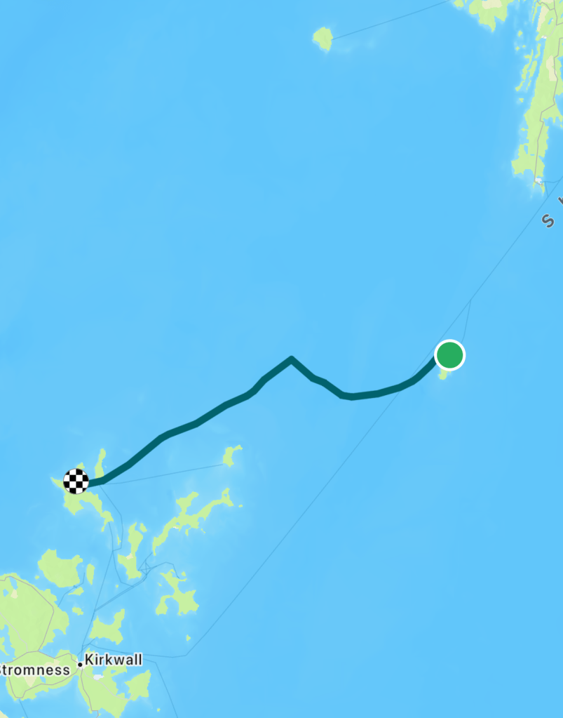 You’ll remember (because I only wrote it five minutes ago, although it is just possible that the train will not be so delayed that I finish this post before it arrives) that we finished dinner with our new friends imagining we were in a yacht club not a bird observatory, and so it was that for the first time on this entire trip we had an actual race agreed for the next day. Sadly the entrants were going to start at different times and finish in different places, one of them uncertain about where that was going to be, so it was more of a race about doing things as best we could so that we could brag when we surely bumped into each other again on the way south. So it was that Tim and I spent most of the rest of the evening poring over charts and weather forecasts and tide diagrams trying to second guess when the wind would shift and which side of the wind and tide we needed to be when it did so that we could pick up the best lift to our particular finishing line on the island of Westray, the northwesternmost of Orkney.