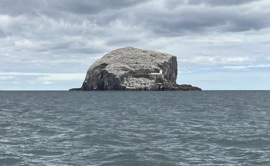 A very pleasant sail involving famous bridges, spinnakers and views of Edinburgh brought me down to North Berwick, where we had once done the calmest International 14 championship ever and spent most of the week staring at a glassy Firth of Forth and the peculiar Bass Rock, a great lump five miles offshore covered in gannets and their guano. Luckily the wind was also offshore today as the pilot guide genuinely states that in fog you can navigate your way around it by smell.