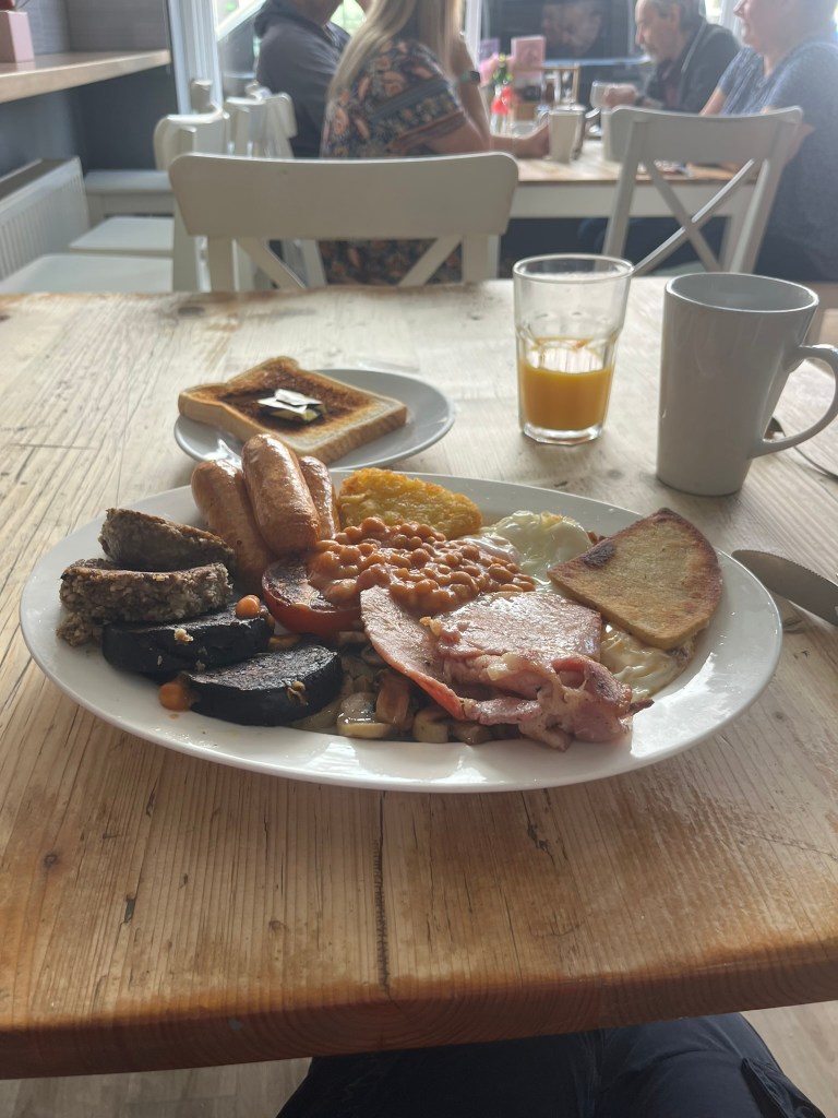 The pilot boat was clean and easy to come alongside, and better still it was only two minutes walk from the cafe reputed by the internet to serve the best breakfast in the North East. This sounded like quite a high bar from what I know of the North East, and I very rarely eat breakfast out, but after the pot buoys I felt I’d earned it. It was a brilliant example of the Borders: everyone in the cafe was English, they were reading English Sunday papers and the radio was playing Radio One, but the breakfast was called The Big Yin; it had hash browns, tomatoes and baked beans which, being vegetables, I’d barely seen in Scotland, alongside haggis and black pudding and tattie scones. Like Berwick itself, it was English but only just.