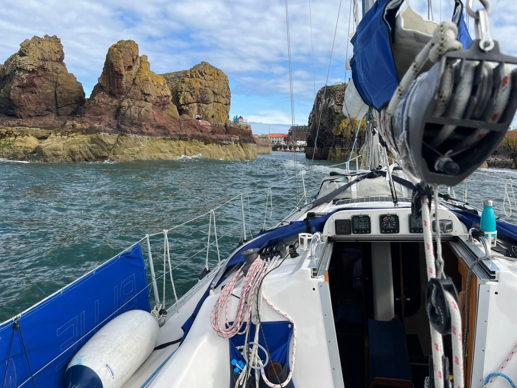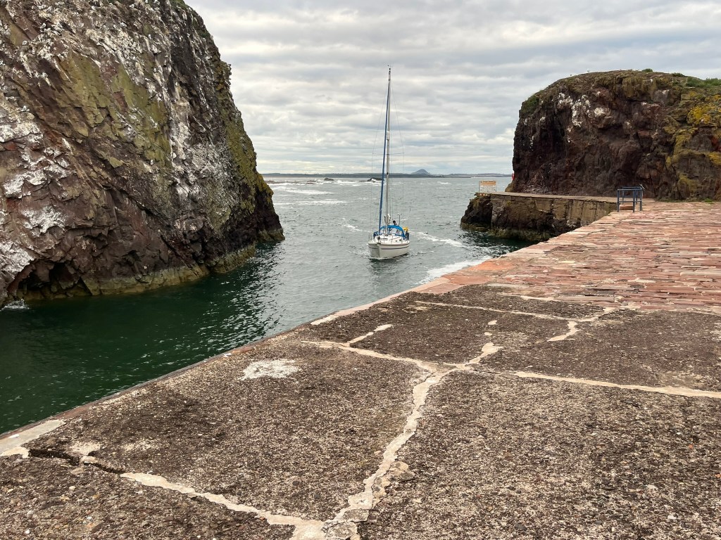 Dunbar has piqued my interest for a few years: you go through it on the train for starters, and inspection of the pilot book revealed a tiny harbour with a famously tricky entrance between a load of rocks. Suspecting this might be my last chance of rocky bravado before I found myself in muddy England, I’d phoned the harbourmaster who’d said I’d be very welcome as long as I didn’t mind some French people tying up outside me. He said this without a hint of Francophobia, by the way, more as a full description of the welcome on offer.