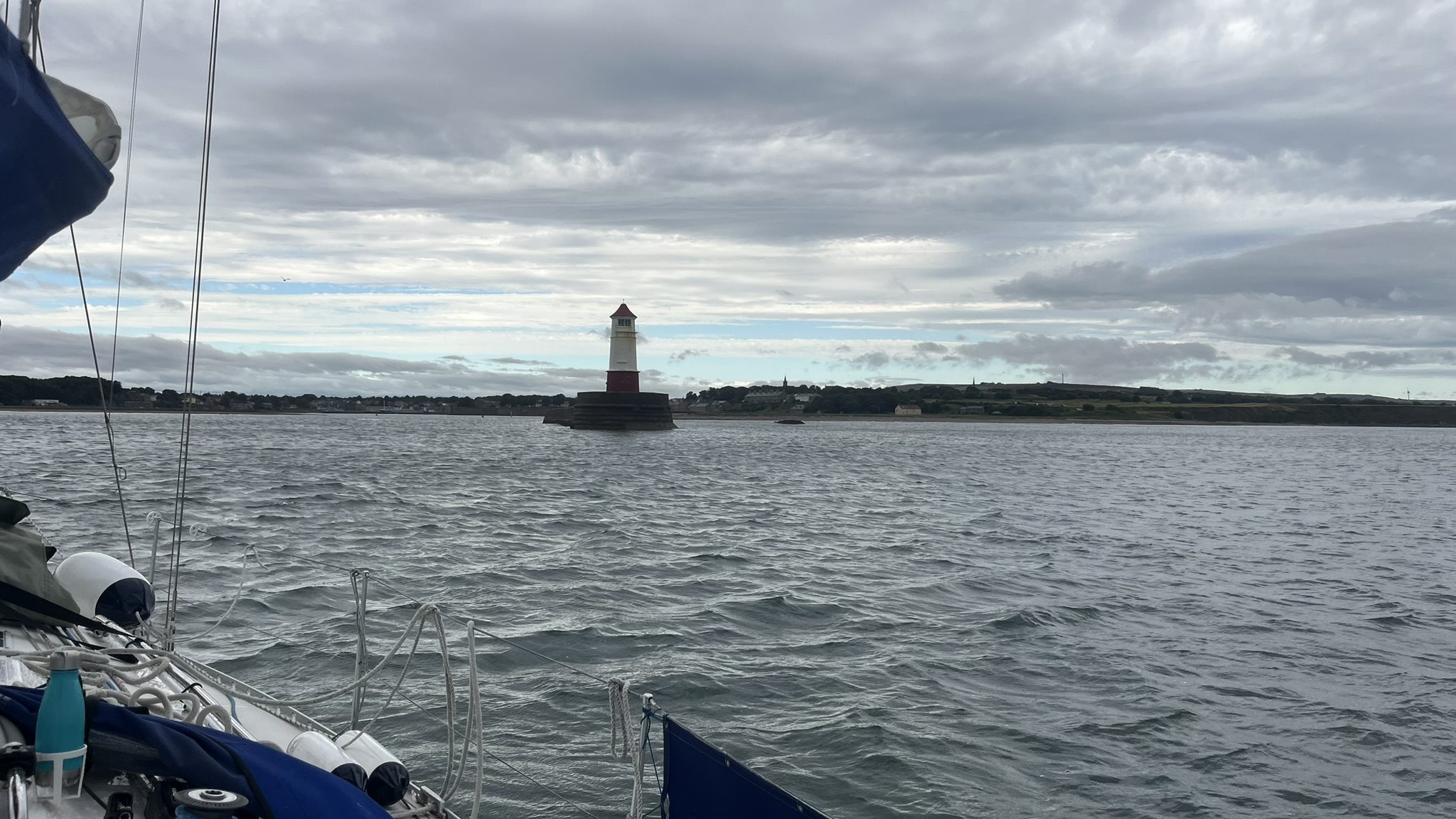 I would have loved to stay in Eyemouth, but the unseasonable Storm Floris was due in a day and I needed to start heading south. As if to tempt the melancholy, the weather had arranged for it to be wet and fairly windy the following morning, which at least meant that the short trip to Berwick-upon-Tweed passed quickly in a blur of rain and pot buoys. I’d been told that the Scottish Government had really clamped down on marking pot buoys, and it was true that all over Scotland they were impressively large and well-flagged, unlike the milk cartons around the South West Coast of England. It sounds improbable but it seemed that the moment we crossed the border the flags disappeared, and within minutes I had hooked a buoy lurking under the surface. I furled the genoa and managed to get the boat back enough to release the buoy, but this was harder work than last week with three of us and not much wind. I set off again, keeping even more of a lookout, and was within sight of Berwick pier heads when we suddenly stopped dead.