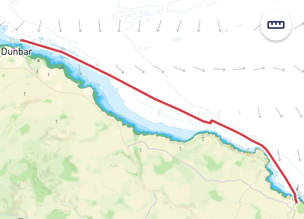 Another peculiar feature of this coast is that by default the waves seem to come from the north regardless of what the wind is doing. Dunbar harbour entrance faces west, and the wind was from the south, so I’d assumed all would be well and didn’t need to worry about the same pilot warning that the entrance would be dangerous in northerlies. Today it wasn’t dangerous per se but it was certainly enough to push the heart rate to levels that would have exposed any underlying health conditions. The northerly swell got bigger and bigger as I headed through the rocks towards the beach, in spite of the wind blowing all of five knots the other way. On the one hand I wanted to slow down to play safe, on the other I quickly realised that unless I floored the throttle I would miss the tiny gap in the rocky cliffs that passes for a harbour entrance.