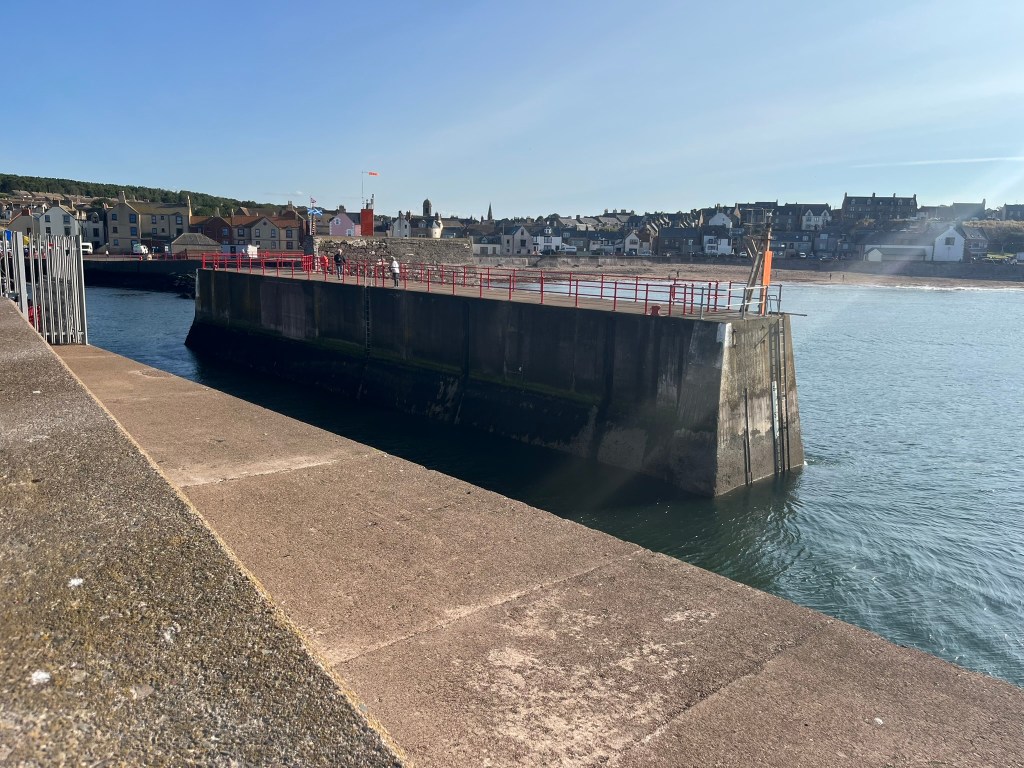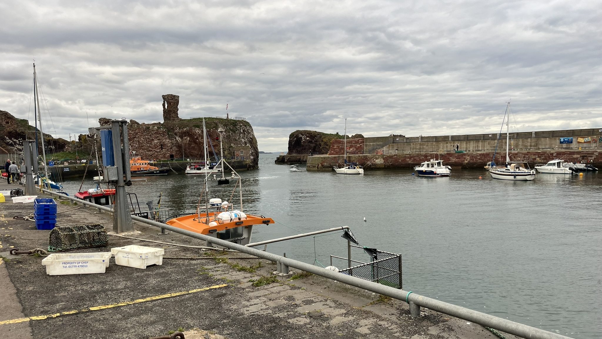 Eyemouth is well up on my pleasant surprise list: it had mixed reviews from passing yachts but I did notice that the more recent the review the more positive it was, and it was clear from the moment that I phoned the harbourmaster that there’d been a strategic decision to be nice to visiting sailors. I got clear advice on how to negotiate their almost-as-narrow-but-not-the-least-bit-tricky entrance, an exact spot to tie up on their very new and very sheltered pontoon, and a personal welcome which included the offer of a tour of the harbour. Best of all, I was told, learning that it was my last night in Scotland, they had laid on the fireworks for me and the harbour would be closed from 2230 to host the rockets.