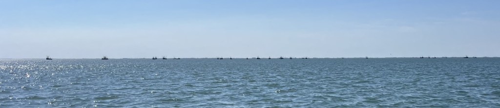 Out in The Wash we were treated to the full unique Wash experience. First, the sight of the entire Boston fishing fleet waiting inside a sandbank for the tide to let them go home to land their catch: