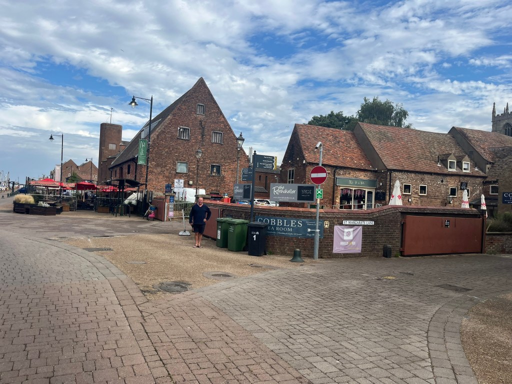 Unlike Fosdyke, Kings Lynn was once the largest port in the UK by quite some way, so pretty much every tourist sign seemed keen to tell us, being England’s only Hanseatic Port when trade was with Northern Europe rather than the Americas – something that the Reform-voting neighbours in Lincolnshire must be permamently perplexed by, although I imagine that’s not particularly unusual. Like all good well-preserved port towns, it is preserved because when the trade moved to Liverpool and Bristol nobody built any more buildings in Kings Lynn, expect for the most hideous Sainsbury’s, so it is all very beautiful for a rather forgotten North Norfolk town. It has loads of interesting features, including, in no particular order, a range of vaguely Hanseatic-looking buildings (oh yes, I’ve been to Lubeck)…