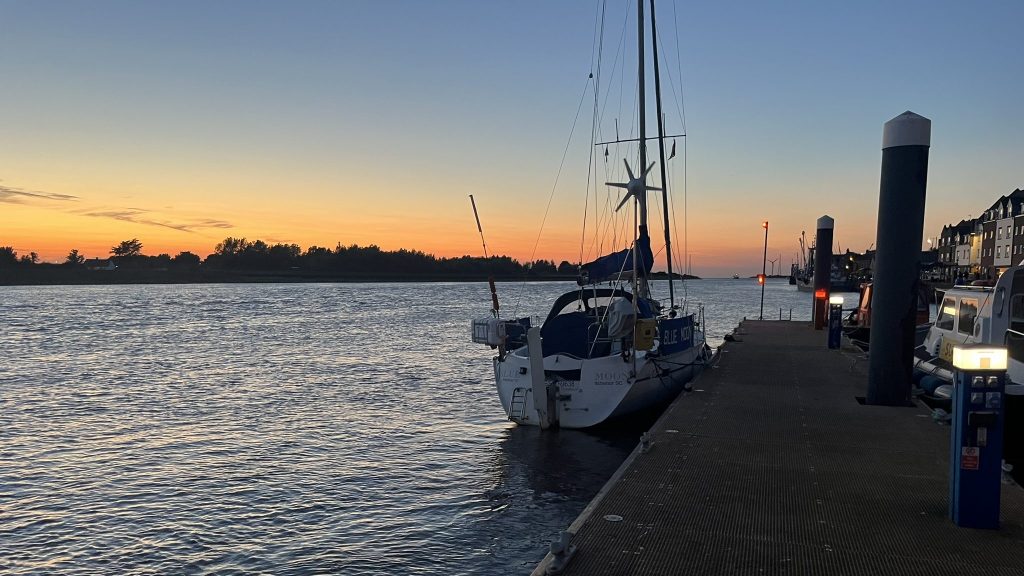Two things put paid to this plan: first, an impending big blow which would make our final destination – Lowestoft – an even more challenging leg into 30-knot southerlies; and second, the discovery that Wells really is now next-the-sea rather than on-the-sea: recent reports suggested that, like Blakeney and various other ex-ports on the Norfolk coast, it had seriously silted up. Blakeney is barely accessible at all, and Wells now reckons on an hour or two around High Water. This was not going to help much in our ambition of getting to Lowestoft as it would now take two days out of the schedule, guaranteeing that we’d be sailing into the big wind just as we got to the famously nasty and wave-filled bit of sea off Great Yarmouth. It was a shame to miss out on the whole North Norfolk coast but the only sensible thing to do was to make one hop from Kings Lynn to Lowestoft which, at 84 miles, was going to be the longest leg of the entire trip.