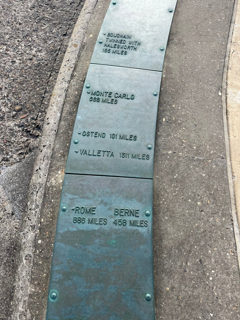 The council had done a better job here than with the shopping centre with a bronze compass rose detailing distances to the capitals of Europe. Sadly someone had stolen the other half with the rest of the world on it.