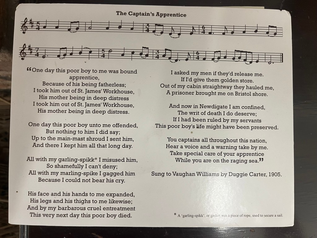 …and also a rather disturbing sea shanty supposedly sung by a local to Ralph Vaughan Williams when he came by collecting folk songs:
